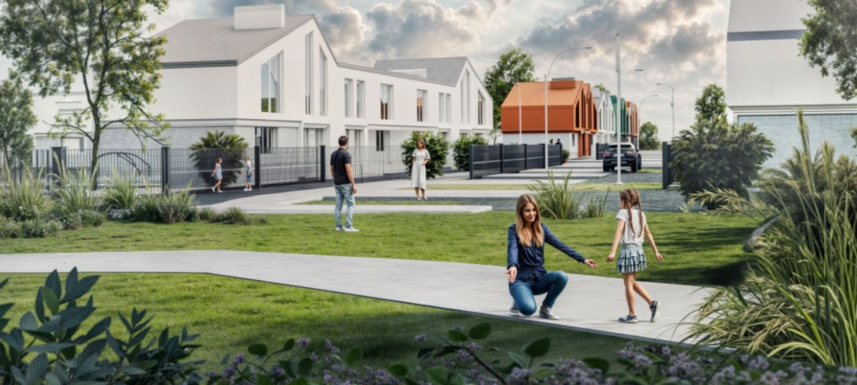 План застройки предусматривает разные форматы жилья: индивидуальные дома, блокированные дома и таунхаусы со встроенными помещениями общественного назначения. По представленным рендерам видно, что в основном это двухэтажные дома площадью 90, 119 и 140 квадратных метров.