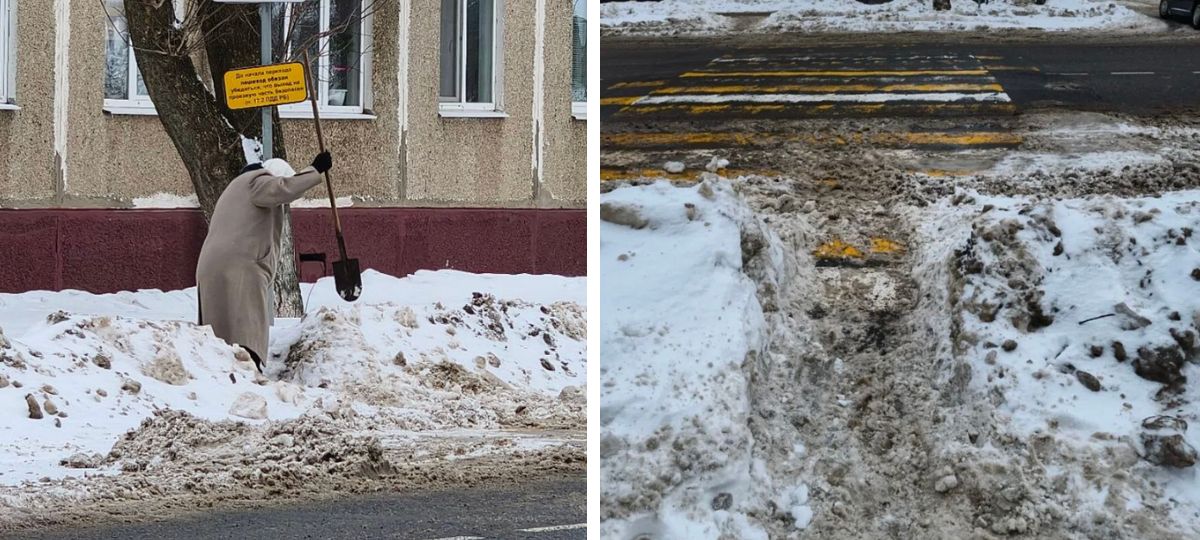 Информационный портал «Электронный Солигорск» опубликовал, как им показалось, светлый и вдохновляющий пост. Подписчик прислал фото из Слуцка: пожилая женщина взяла лопату и вышла чистить снег на пешеходном переходе.